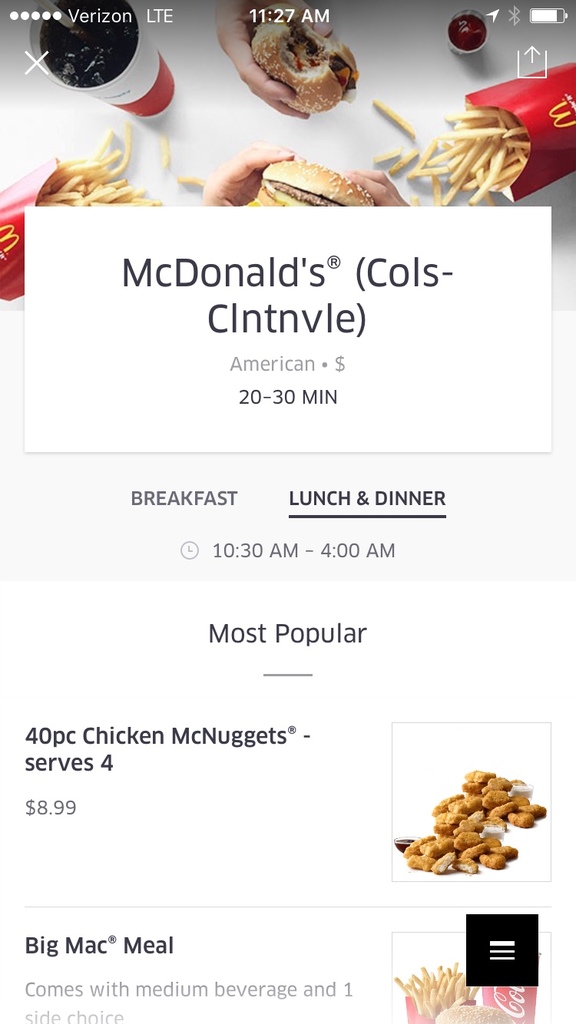 People can now order burgers, fries, milkshakes and other items using the UberEATS app. For now, service appears to be limited to one McDonald’s restaurant in the Clintonville area.