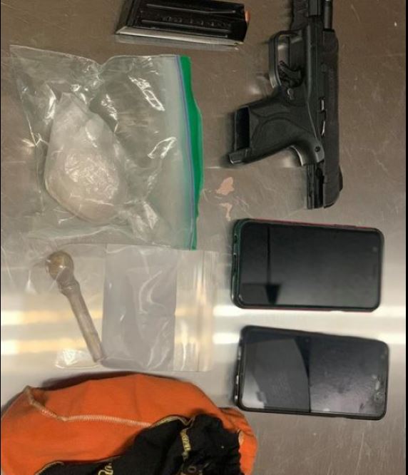 A search of the car revealed 3.1 ounces of suspected Methamphetamine. A Ruger 9mm handgun was also found during the search, along with a loaded magazine. The handgun returned as stolen out of Marietta PD.