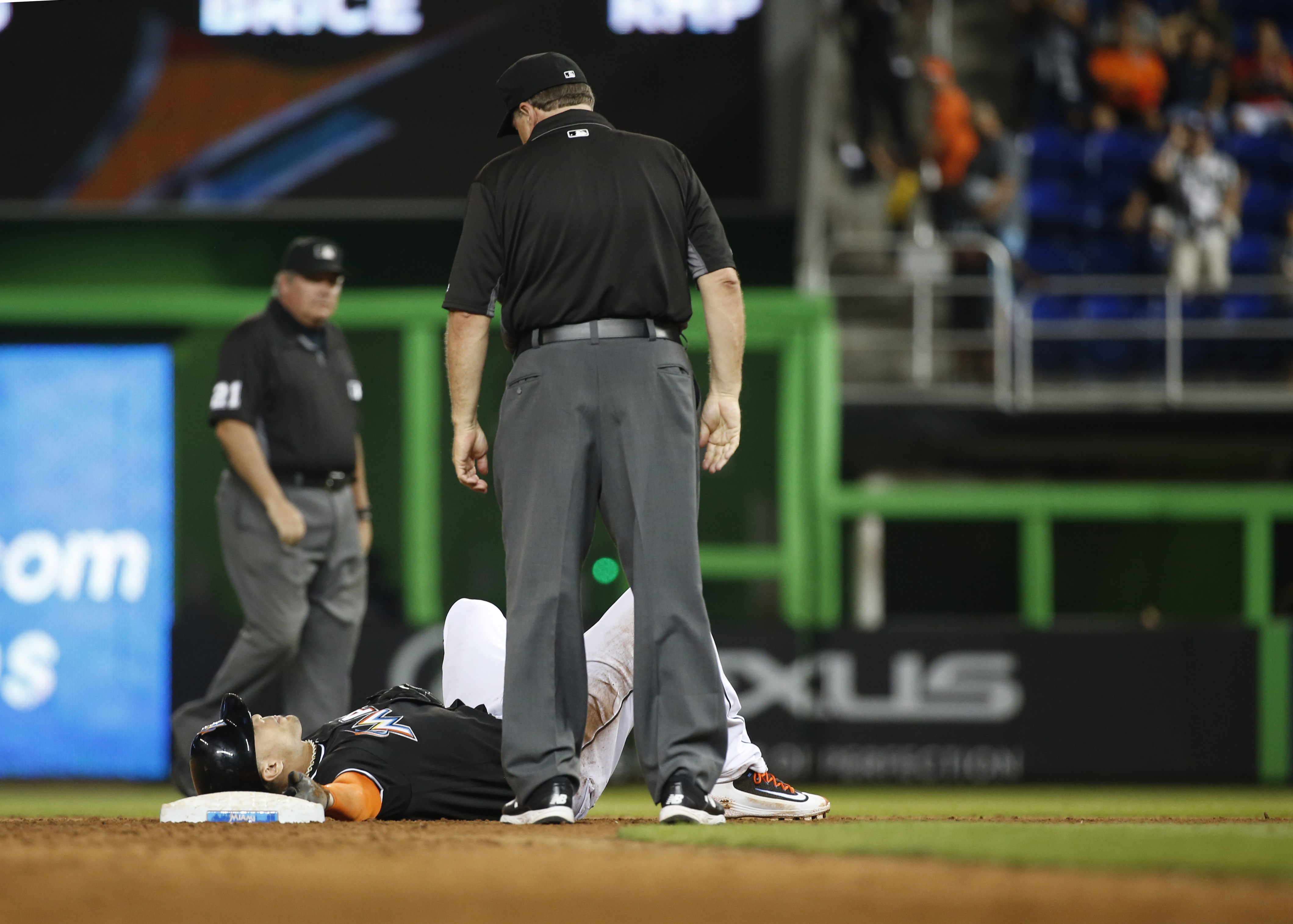 “He looked like he got shot,” manager Don Mattingly said. “You just see the leg give out. Obviously it’s not a very good sign when you see that. Hopefully he’s out a couple of weeks, and we get back at it. If not, we’ve got to do what we’ve got to do.”