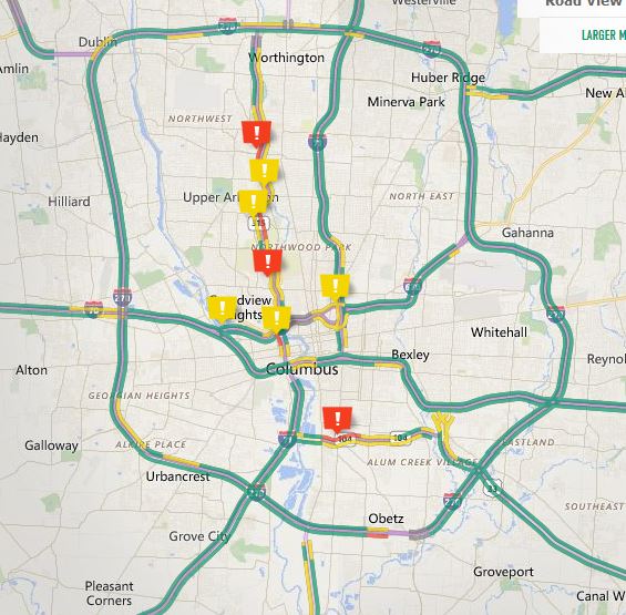 Other trouble spots included Interstate 670 east near Grandview Avenue, SR 315 south between I-670 and Broad Street, SR 315 north between North Broadway and Henderson Rd., and I-71 south between I-670 and East 5th Avenue.