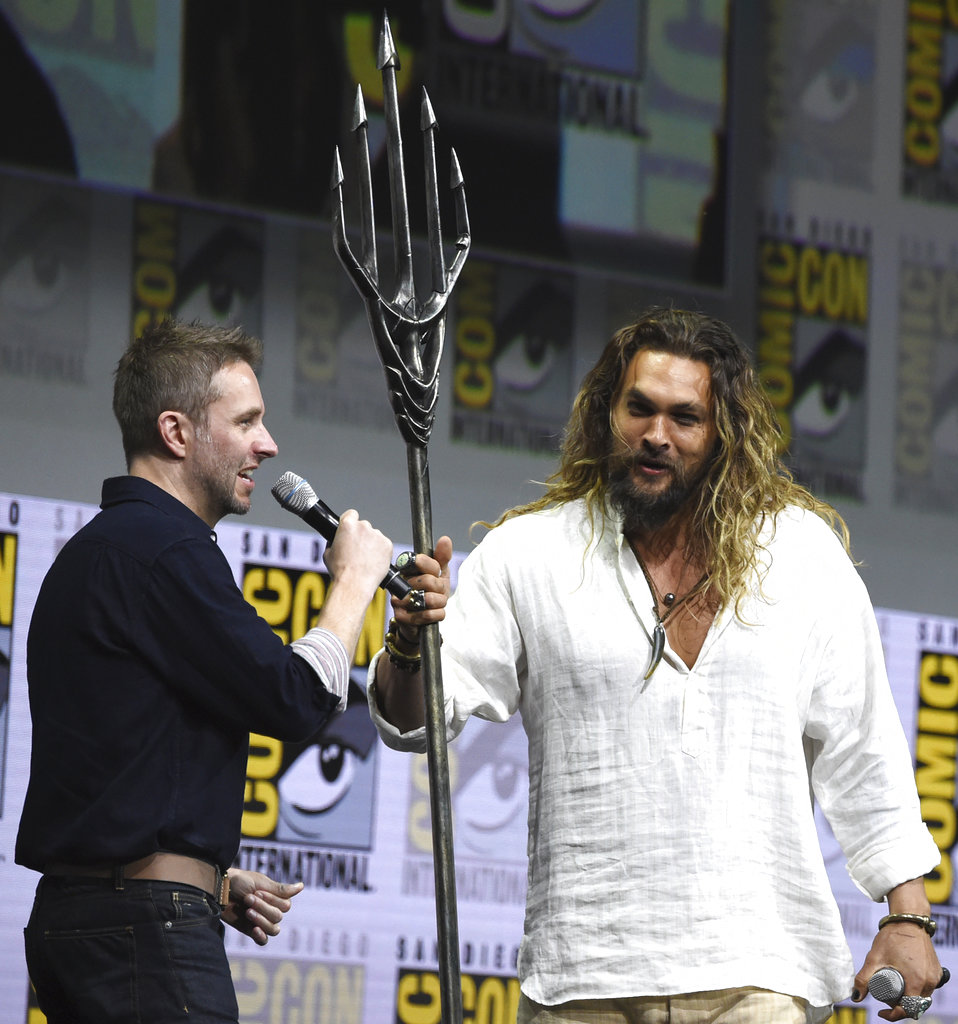 Warner Bros. also teased a bit of “Aquaman,” out Dec, 2018, starring Momoa in the title role. A snippet of footage from the James Wan-directed film, showed fishermen who are quite surprised when something under the water catches on to the hook and starts dragging the boat along. They look underwater to see a fleet of giant ships coasting under the surface.