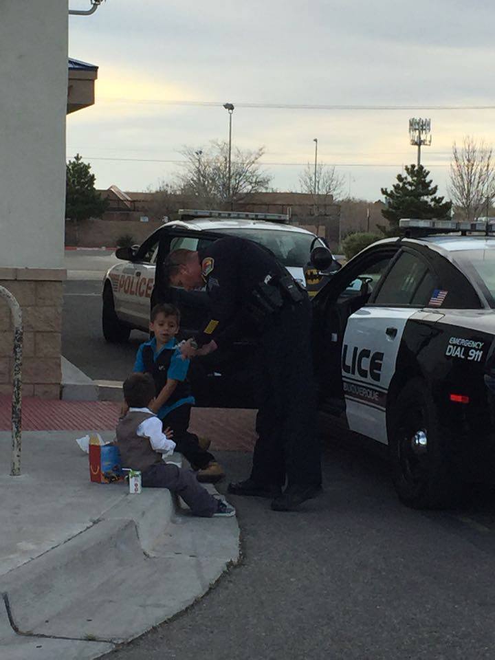 Another officer on scene, a Sergeant, went across the street to McDonald’s to get some food. Meanwhile, the other cop kept the boys entertained with some toys in the trunk of his unit.