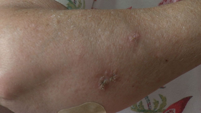 Helms was pinned down on her back, fighting the pit bull that had its teeth in her skin.