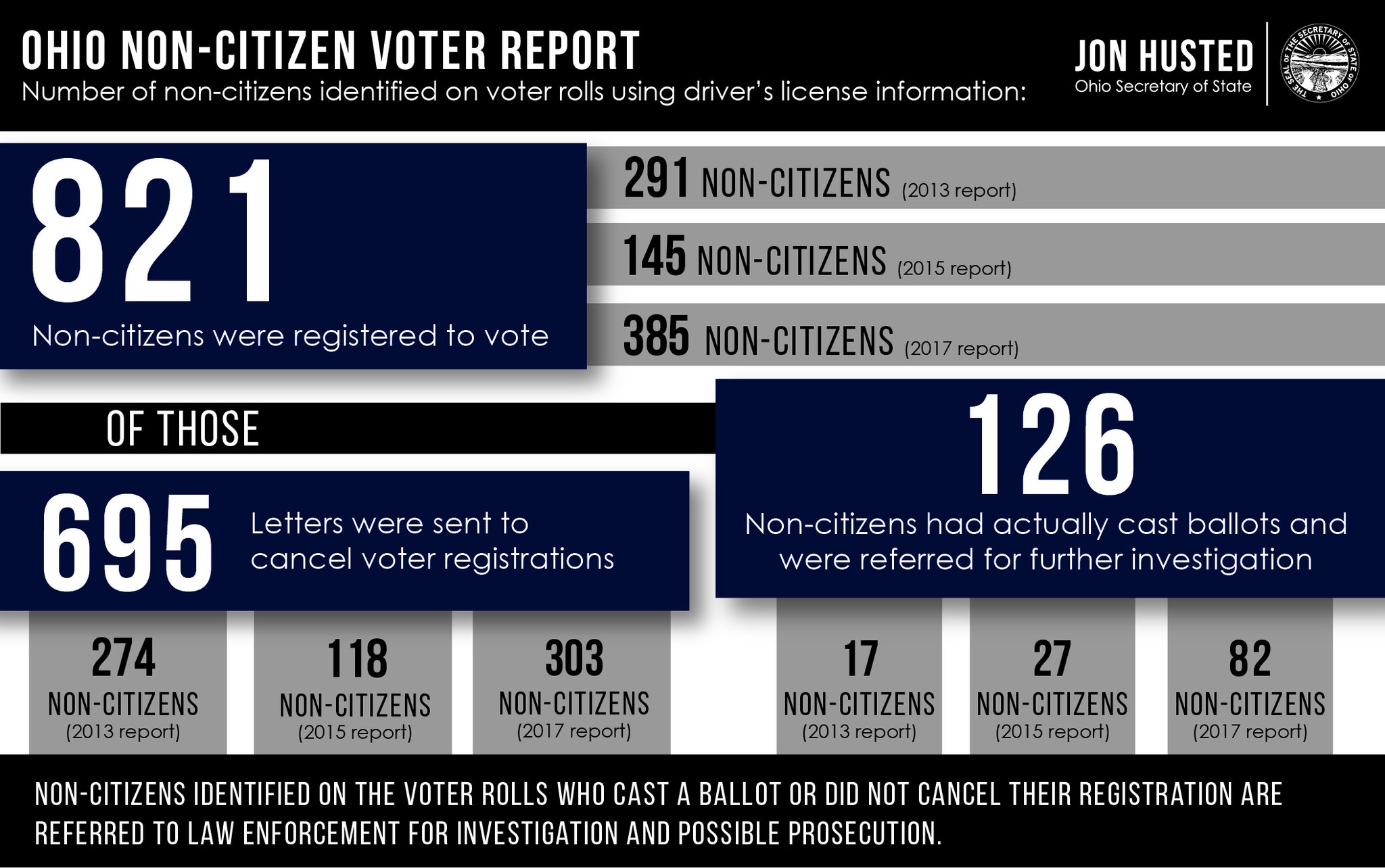 Husted said this year’s review found more registered non-citizens than two previous reviews in 2013 and 2015. “We’re getting better at doing the search and finding this information and also in a presidential election year you’re just going to have more people voting and so you’re going to have a bigger number,” Husted said.