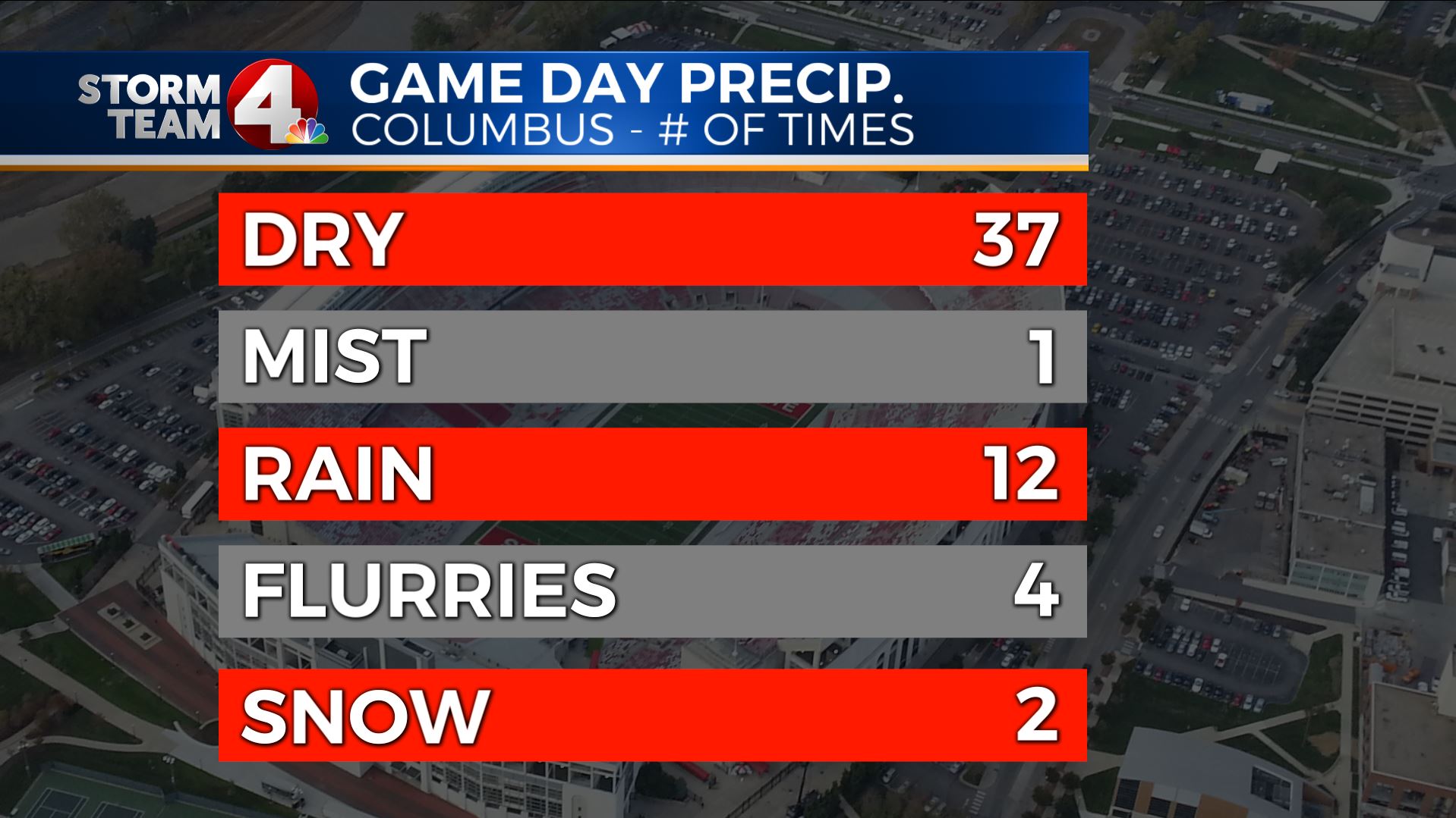 Columbus (WCMH) – Since 1901 “The Game” has been played almost every other year here in Columbus. We have had days as warm as 70°, and as low as 20° and everything in between, even rain and lots of snow!