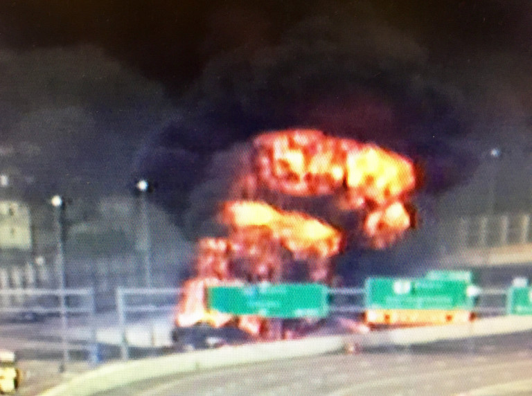 The accident happened around 4:50 p.m Sunday. A large cloud of smoke can be seen for miles.