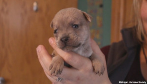 DETROIT (WOOD) – An orphaned puppy is getting the nutrition, love and social bonding he needs to be adopted out to a human family, thanks to the Michigan Humane Society’s foster program.