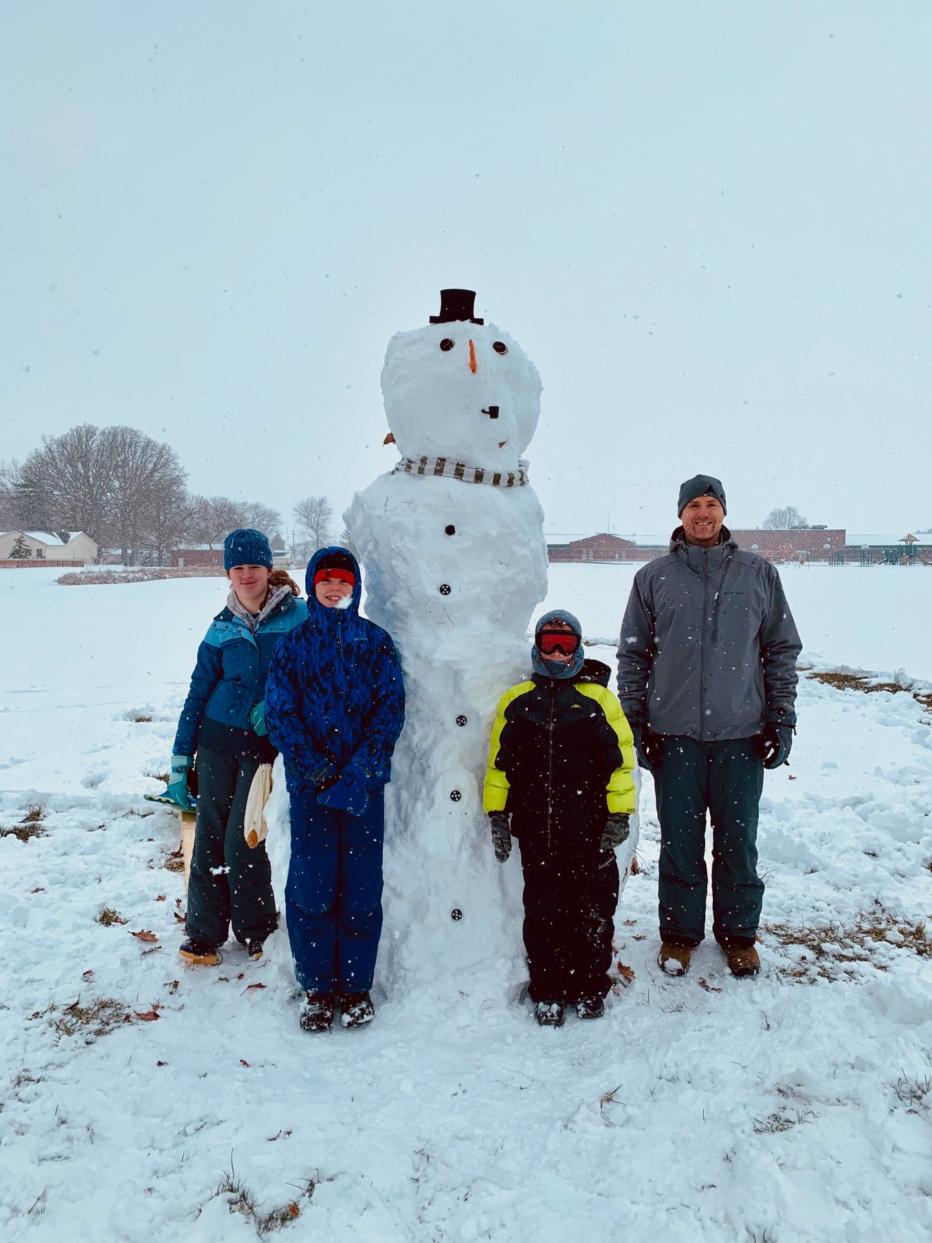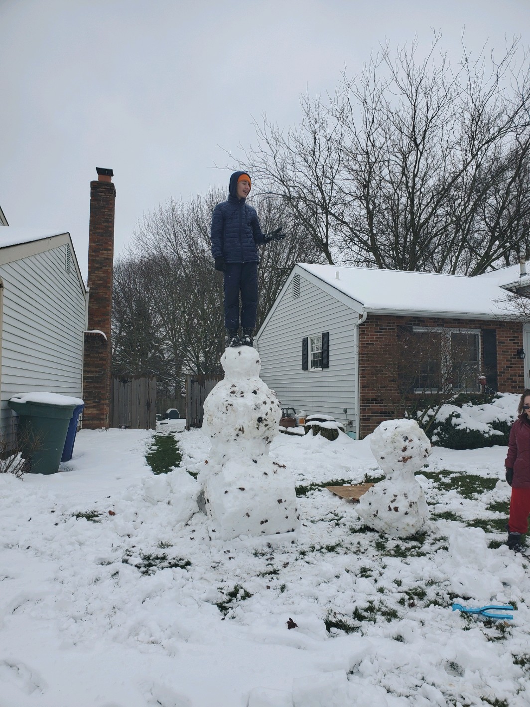 My kids (minus one because he camped with his Boy Scout Troop this weekend 😳) were so excited to wake up to snow this morning! They put their snow gear on right away and set off to build the tallest snowman in our backyard. Their friend came out to help and my husband helped with the heavy lifting. For reference my husband is 6’2, so they definitely made a very tall snowman! We live in Marysville, OH and last I checked we have 4 inches of snow and hope to get more later!