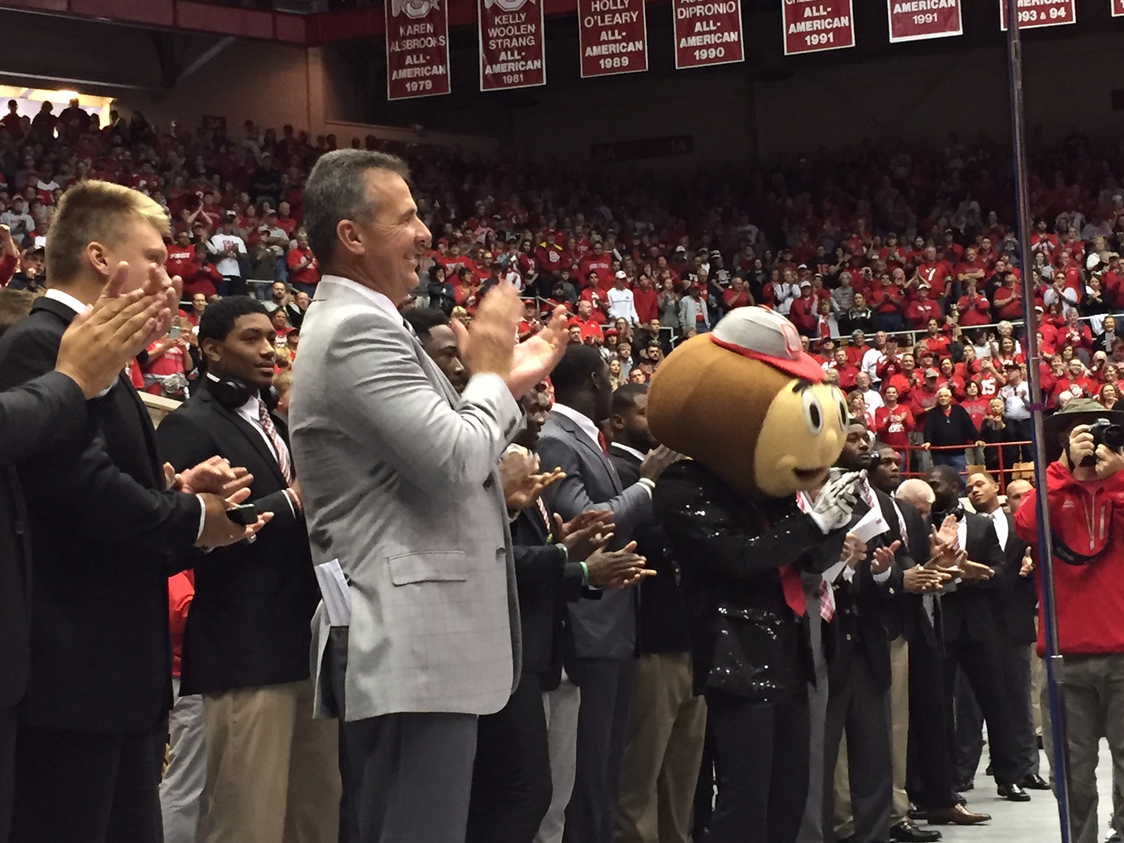 “I think it’s great,” said fan Kirk Jones. “We’ve been coming to games and the skull session for a long time here. It’s great to see how Ohio State seems to always remember people that have been traditions in the program. To see those coaches come back, people recognizing them and giving him a standing ovation was great to see you today.”
