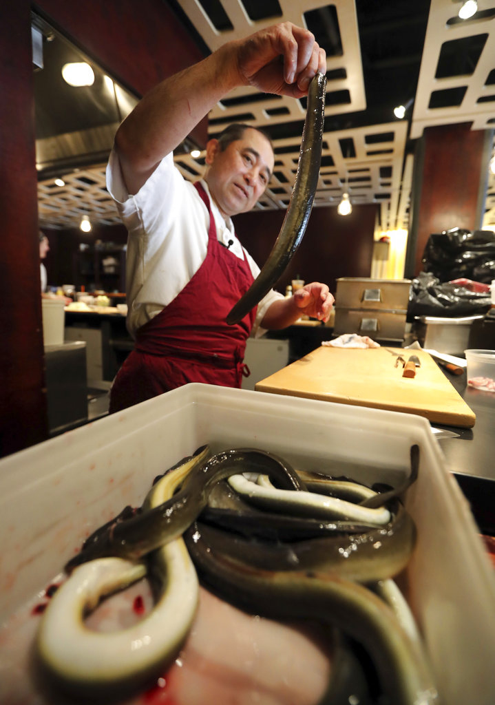 Sunny Chung, chef and owner at Yobo in Portland, gets Maine eels from American Unagi, the only American eel farm in the state. He described Maine eels as a top-notch product and “the only eel that we use.”
