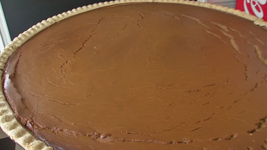 A 6-foot wide pumpkin pie is on display inside Lindsey’s Bakery.