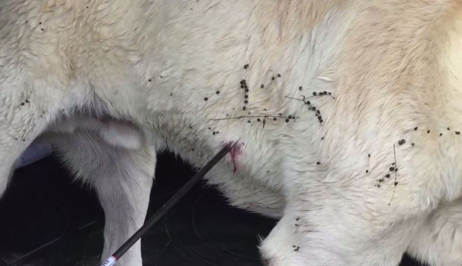 The Redicks say they had to take their dog Cosmo to a clinic for emergency surgery last week to remove the arrow. Chatfield Redick says the veterinarian found the arrow missed Cosmo’s heart and lungs by millimeters.