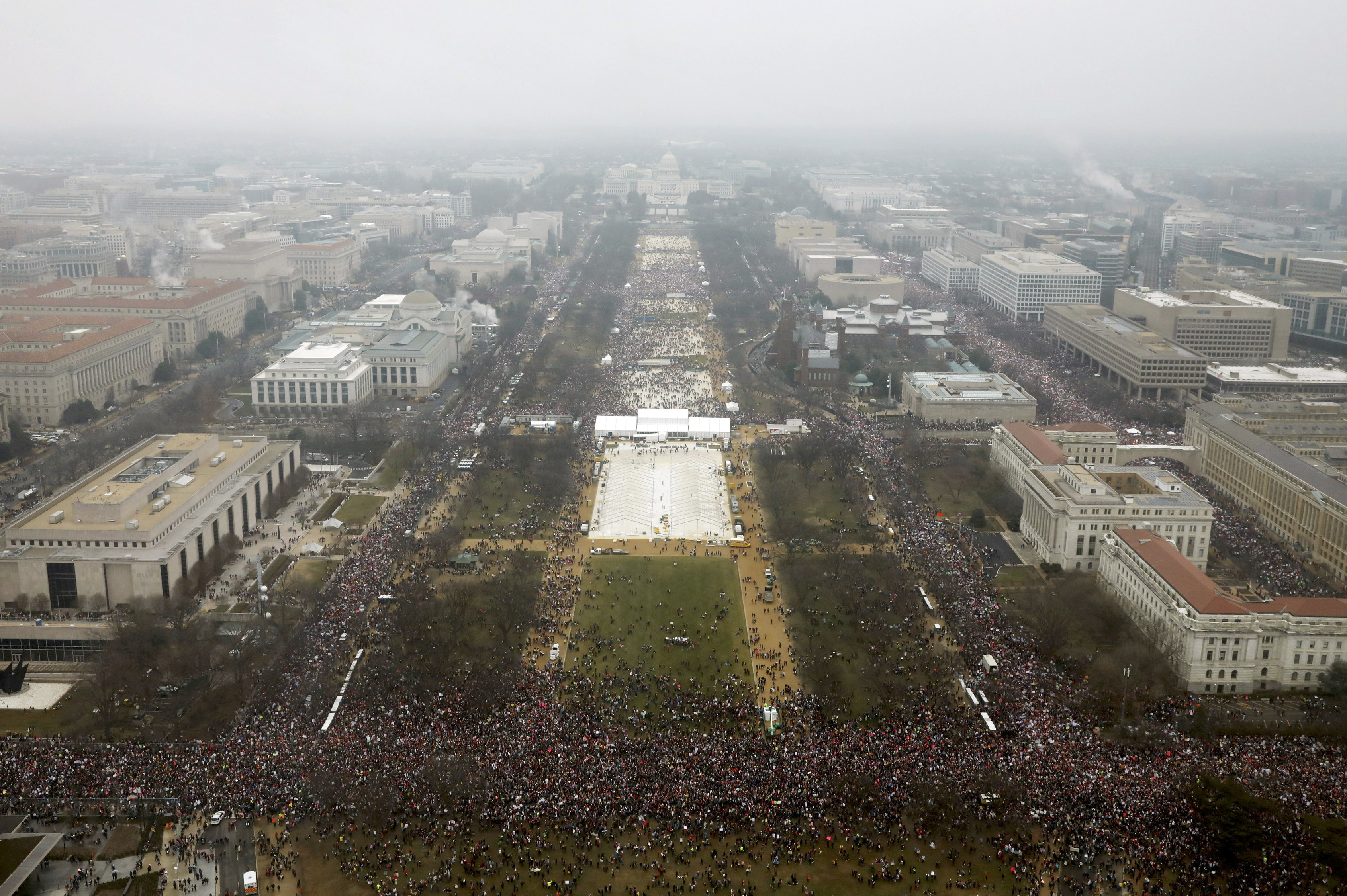 On his way back from the CIA, President Donald Trump has gotten a first-hand look at the Women’s March on Washington.