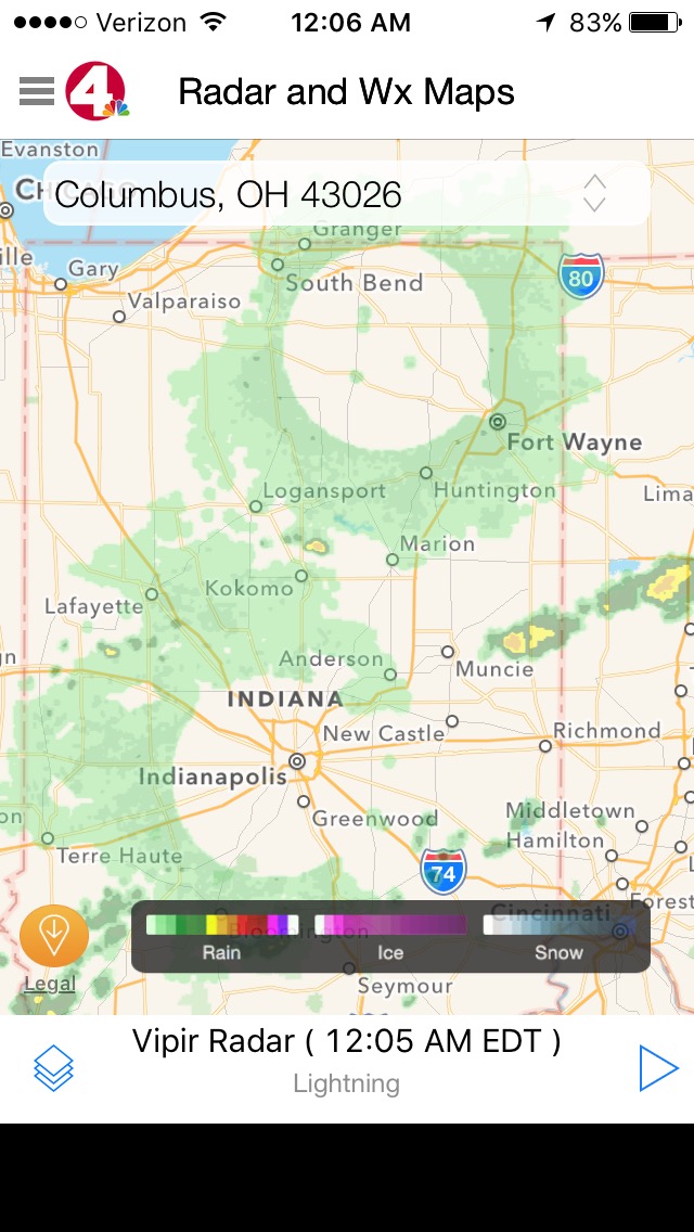 In this case it appears the lowest decibel return has been hidden a given distance from the radar site. This is what is giving the radar a cookie cutter punch look over Southwest Ohio on the image on the left, and over Indianapolis and Northern Indiana on the image on the right.