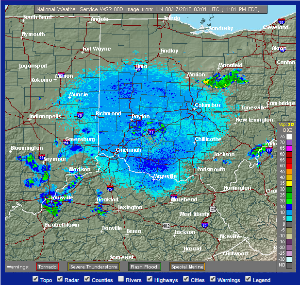 Below are two examples of this from Tuesday night, one is a snapshot of the National Weather Service US composite of radar, and the other is the single site from Wilmington, Ohio.