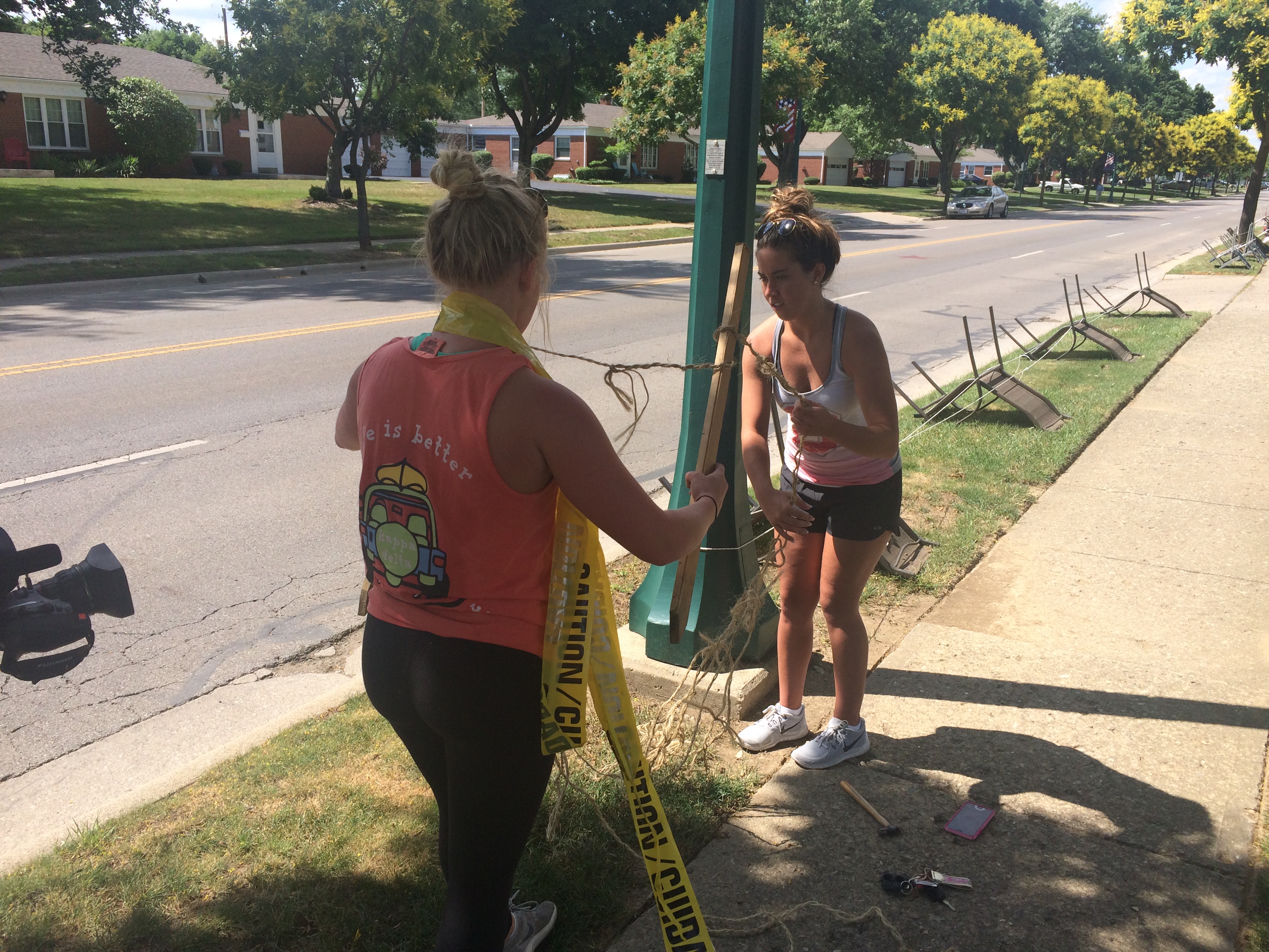 “My dad put these down at 7:30, but we looked and it was in the complete sunlight and I know my mom would not be happy with that one,” said Shannon Von Voigt, while holding several wooden stakes and caution tape. “We’re going to move it somewhere shadier.”