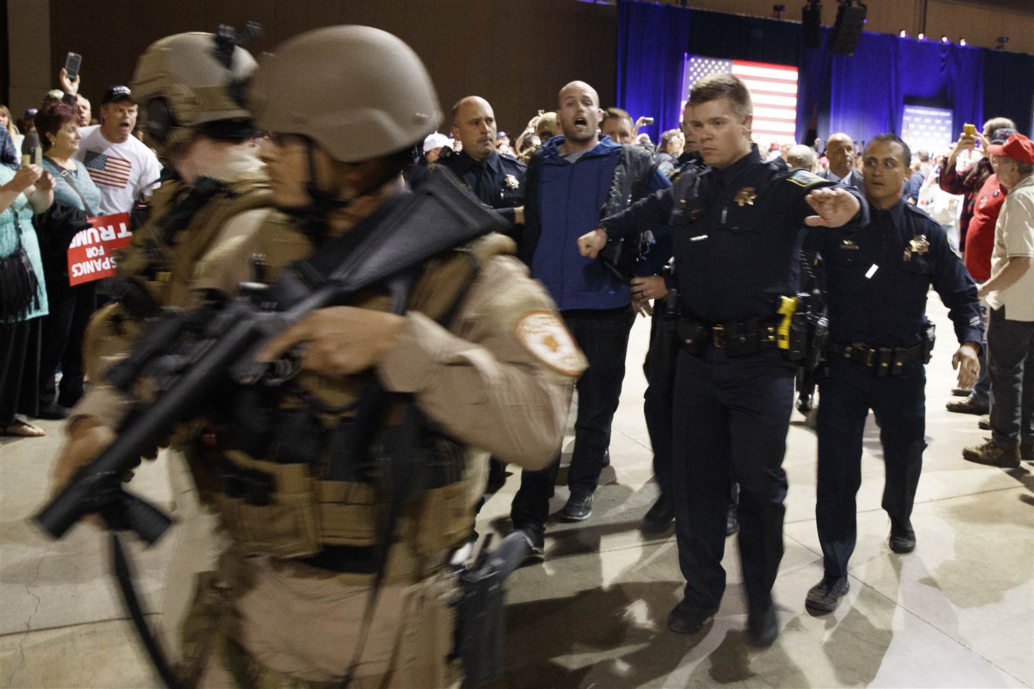 The Republican presidential nominee had been speaking to supporters for a while when a disturbance broke out in the crowd close to the podium. Two Secret Service agents quickly surrounded Trump, then hustled him away.
