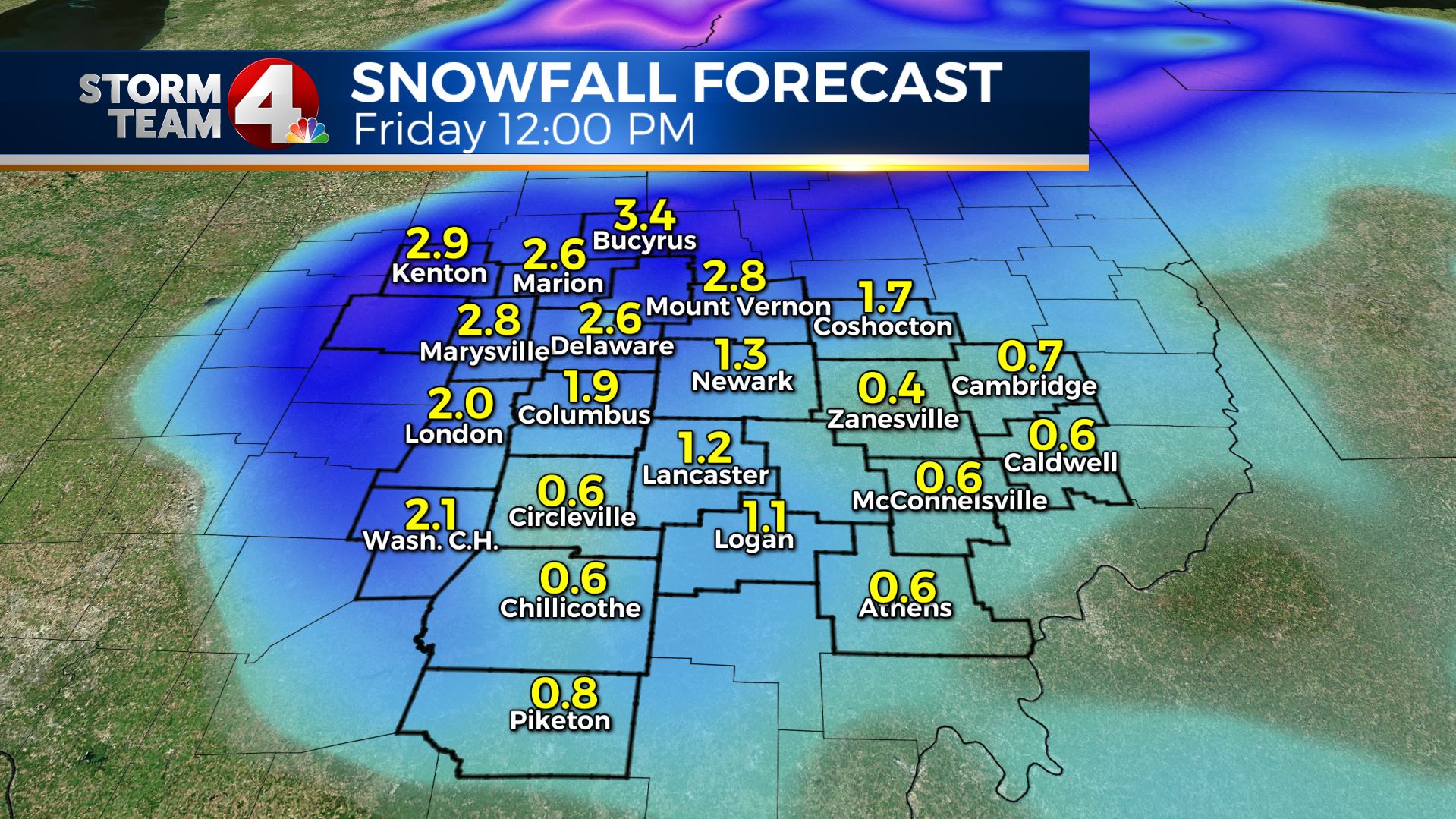 Thursday night temps continue to fall back into the middle to lower 30s, cold enough to support a changeover to all snow overnight.