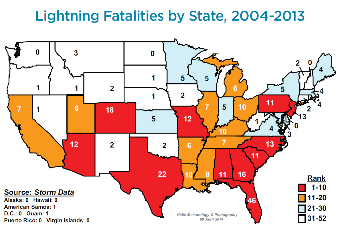 Ohio is in the top 5 states of people hit by lightning every year since 1959, and in the top 10 states in the last decade.
