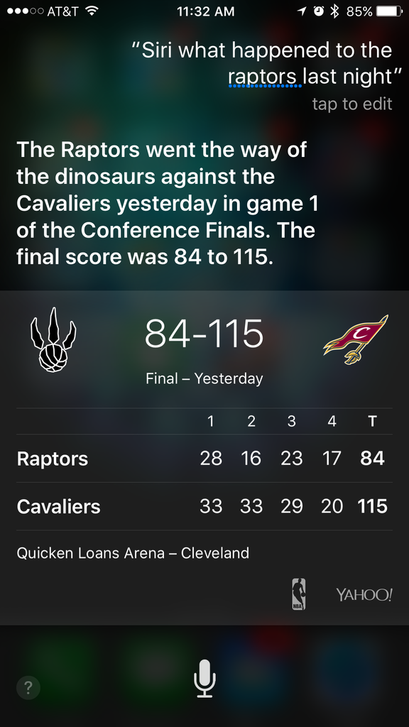 If you ask Siri “what happened to the Raptors last night,” she gives a snarky, fun response.