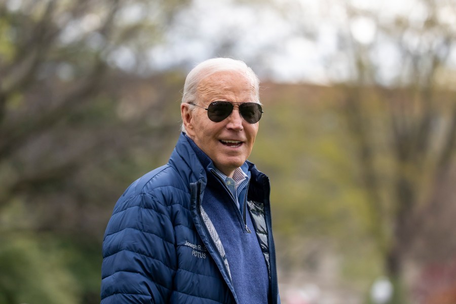 President Joe Biden walks to Marine One for departure from the South Lawn of the White House, Friday, April 5, 2024, in Washington. Biden is headed to Maryland. (AP Photo/Alex Brandon)
