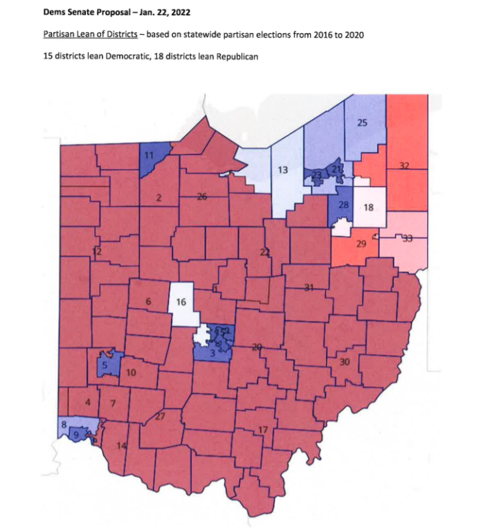 The Democrats’ proposal for the House showed 45 seats leaning Democrat, 54 leaning Republican. On the Senate side, Democrats proposed 15 seats leaning Democrat, 18 Republican.