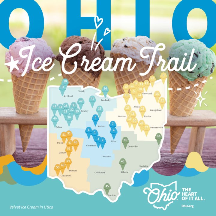 “Wherever your Ohio adventure leads, a scoop of Made in Ohio ice cream is the ultimate cherry on top of an unforgettable summer,” said state tourism director Sarah Wickham. “Our goal in expanding the Ohio Ice Cream Trail was to highlight the vast diversity of Ohio’s ice cream offerings.”
