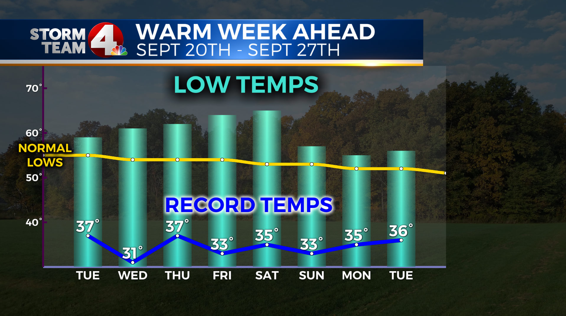 Even our morning lows will remain quite warm for the 3rd & 4th weeks of September: