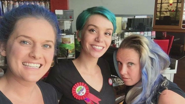 Ashley Chiarizzio, 24, works at the Mt. Juliet Red Robin and has blue hair and tattoos.