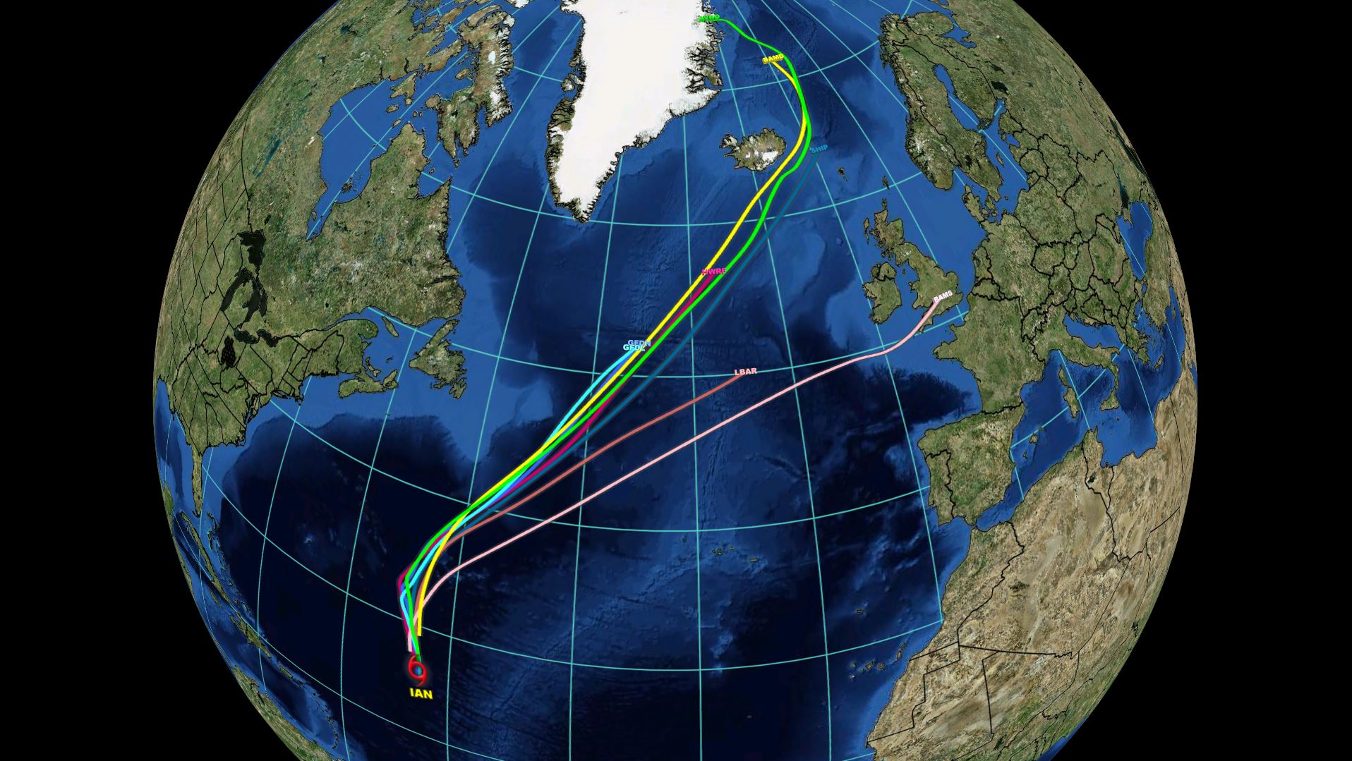 Winds at 45mph with this storm in the middle Atlantic. Forecast track has it becoming a post tropical storm, and racing between Iceland and the UK by the weekend!!!