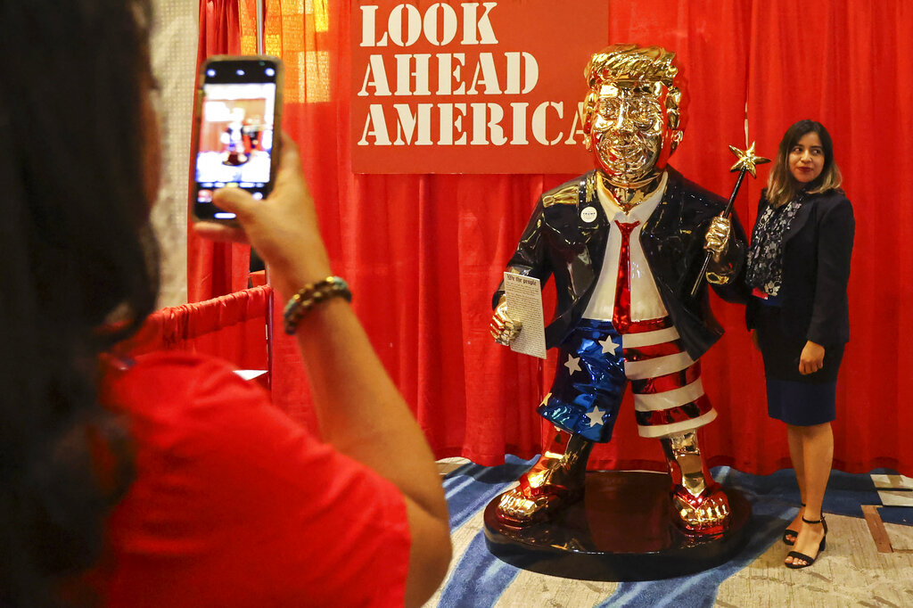 WASHINGTON (AP) — A conference dedicated to the future of the conservative movement turned into an ode to Donald Trump as speakers declared their fealty to the former president and attendees posed for selfies with a golden statue of his likeness.
