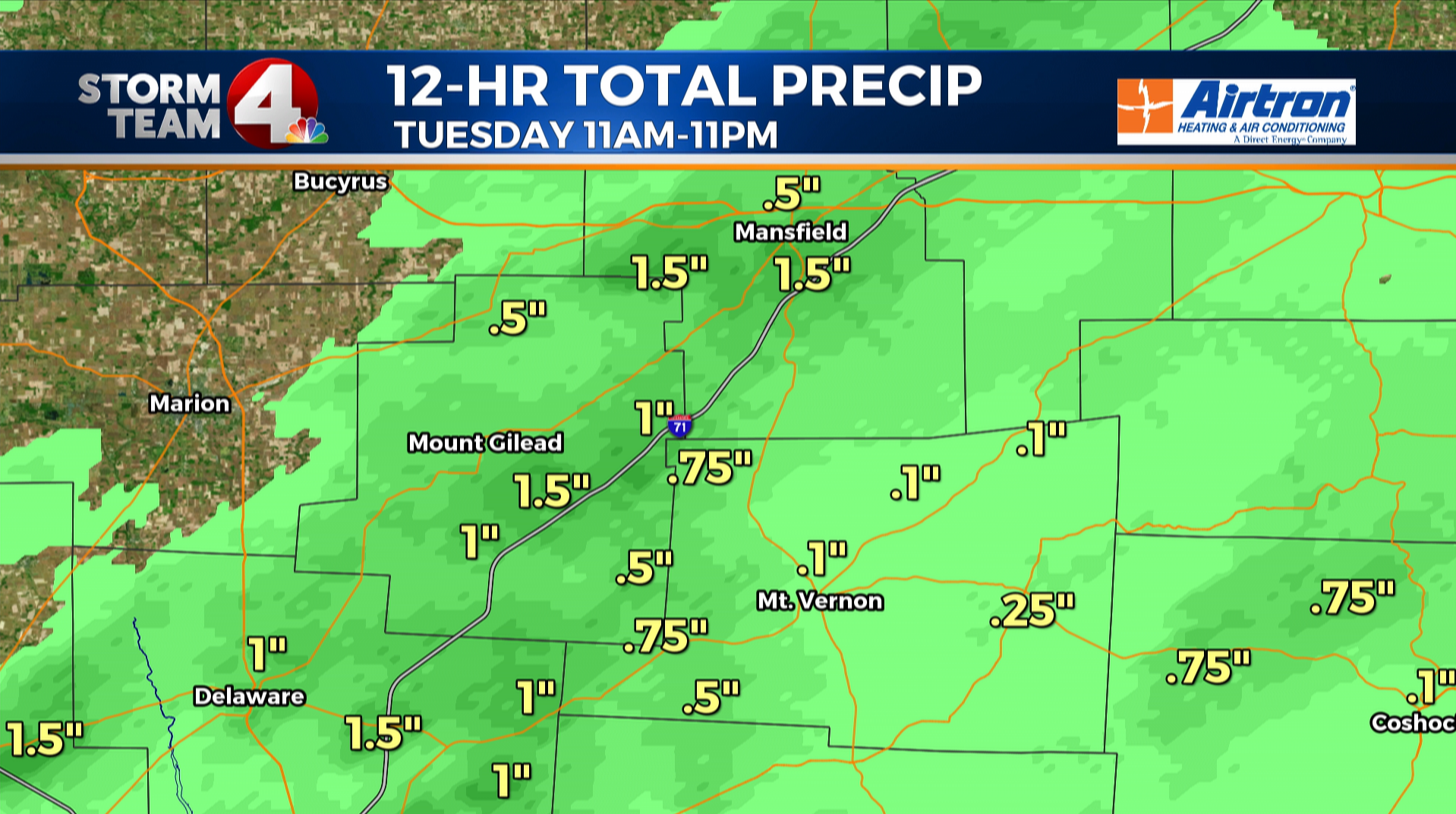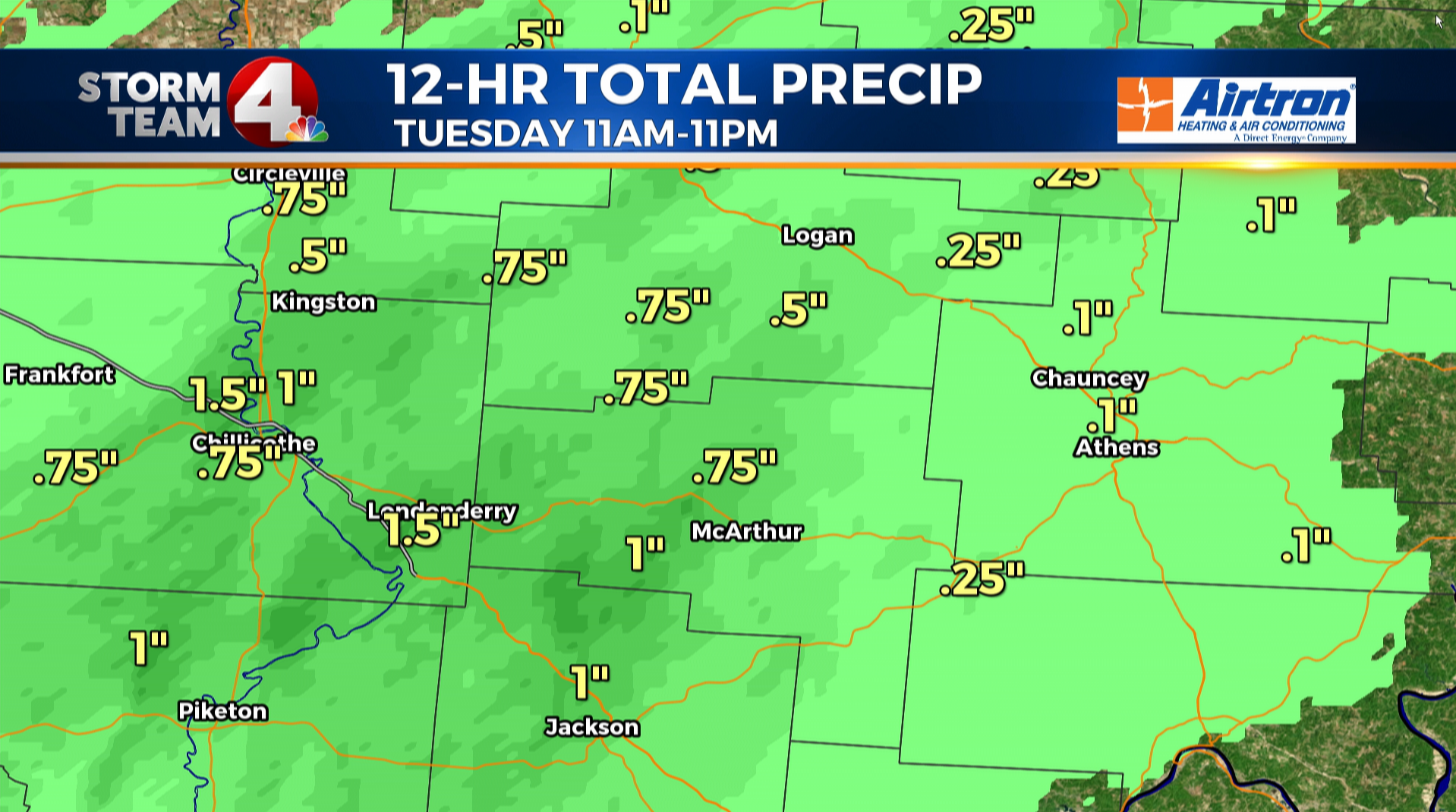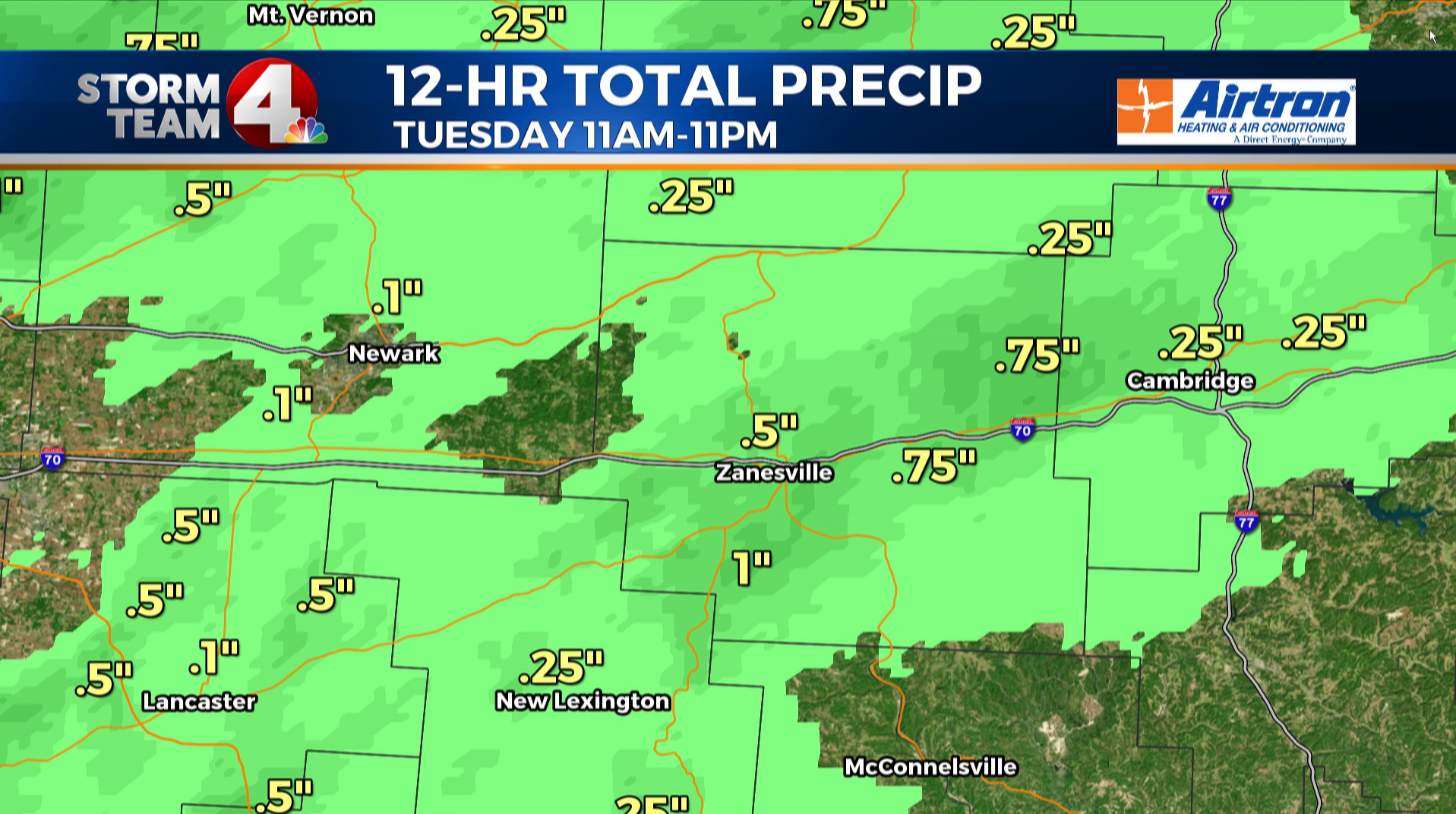 COLUMBUS (WCMH) – Round one of rainfall hit Central Ohio Tuesday late afternoon & evening. It was a welcome site for many people as rainfall is very very needed. In Columbus we are more than 3.76″ below normal for the year in the rainfall bucket.
