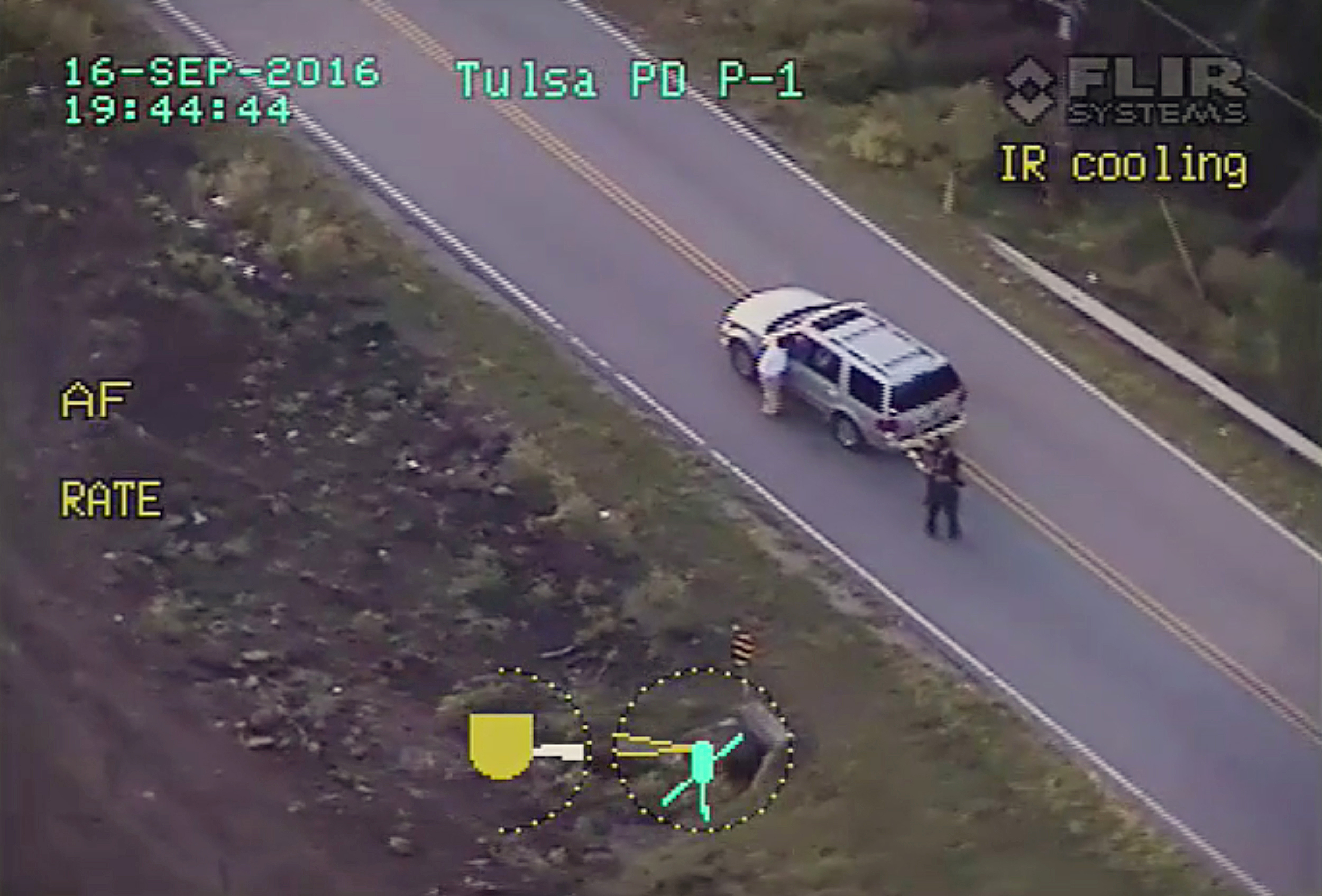 Dashcam and aerial footage of the shooting and its aftermath showed Crutcher walking away from Shelby with his arms in the air. The footage does not offer a clear view of when Shelby fired the single shot that killed Crutcher. Her attorney has said Crutcher was not following police commands and that Shelby opened fire when the man began to reach into his SUV window.