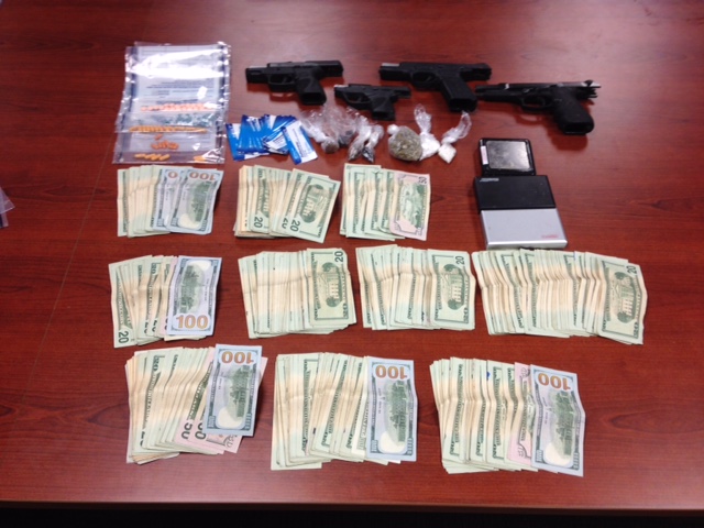 Over and ounce of heroin, four firearms, an ounce of crack cocaine and approximately $10,000 were seized during the search.