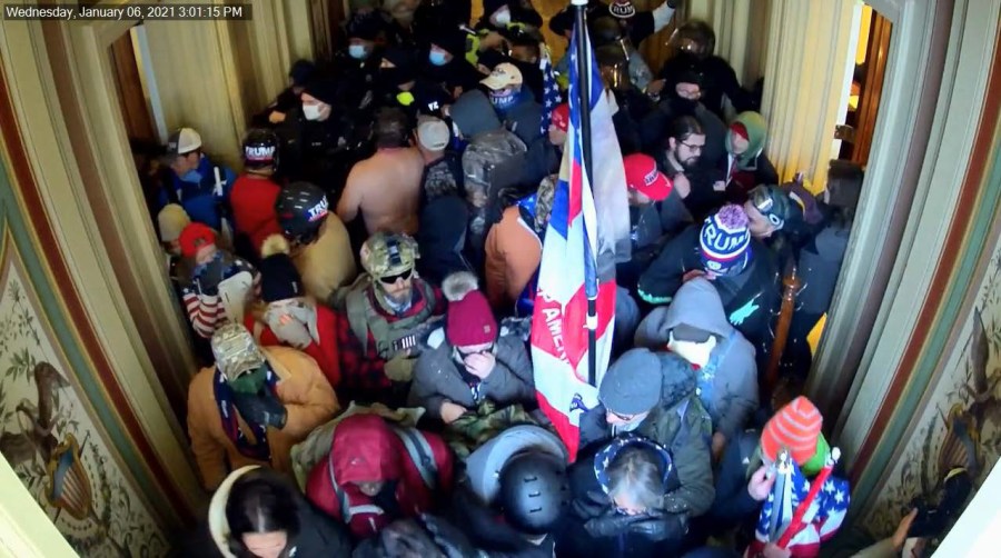 Lyon initially told investigators he was not inside the Capitol Building, but pictures confiscated from Lyon’s phone allegedly show the men posing with the coat rack and also inside the building as the riots took place.