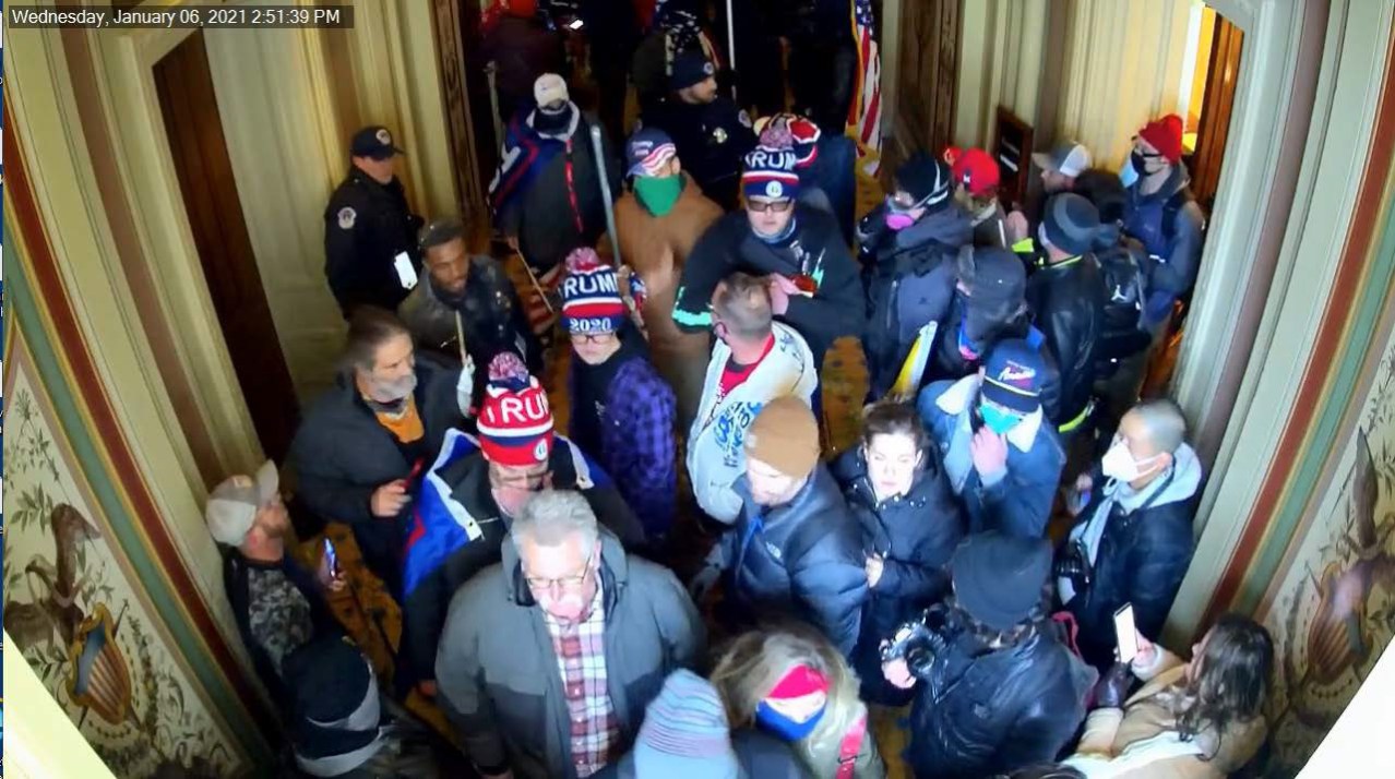 In another video confiscated by the FBI, Thompson can allegedly be seen at one point inside a ransacked office yelling, “Woooooo! ‘Merica! Hey! This is our house!”