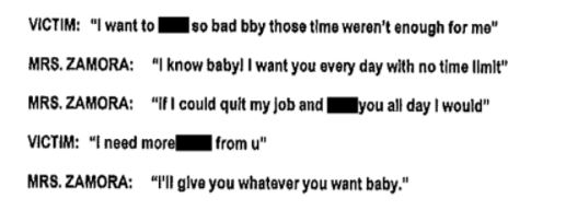 The investigation started after a parent found text messages between Zamora and the student. The parents used an app to help monitor the teen’s phone usage.