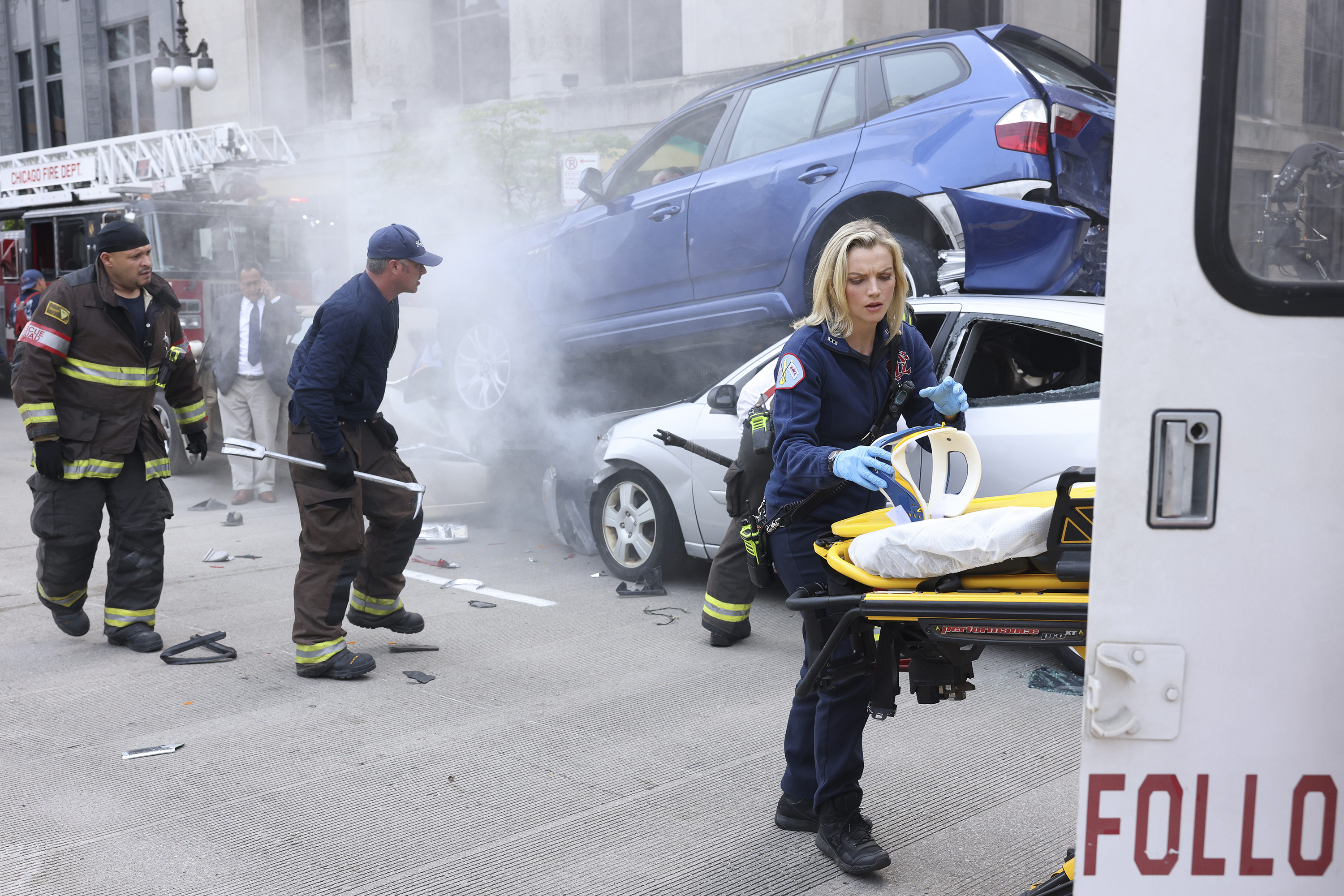 Haas returns near the end of the video in an interview clip, summing up what keeps fans enthralled with “Chicago Fire.”