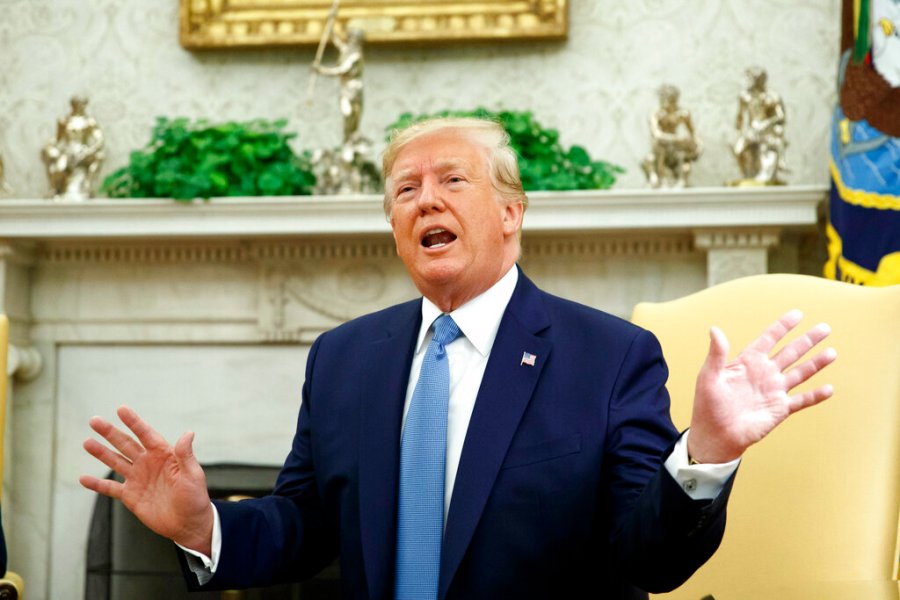 President Donald Trump speaks during a meeting with Pakistani Prime Minister Imran Khan in the Oval Office of the White House, Monday, July 22, 2019, in Washington. (AP Photo/Alex Brandon)