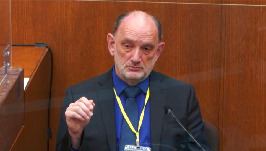 In this image from video, Dr. David Fowler, a retired forensic pathologist and former chief medical examiner for the state of Maryland testifies as Hennepin County Judge Peter Cahill presides, Wednesday, April 14, 2021, in the trial of former Minneapolis police Officer Derek Chauvin at the Hennepin County Courthouse in Minneapolis, Minn. Chauvin is charged in the May 25, 2020 death of George Floyd. (Court TV via AP, Pool)