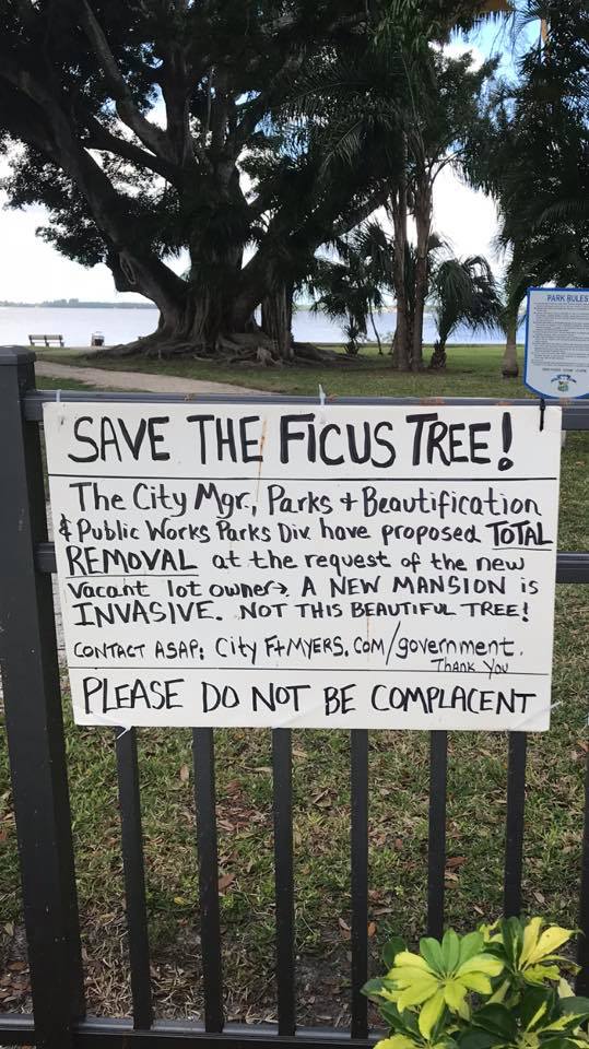 Specifically, a giant ficus that’s shaded Snell Family Park in Fort Myers for more than a century.