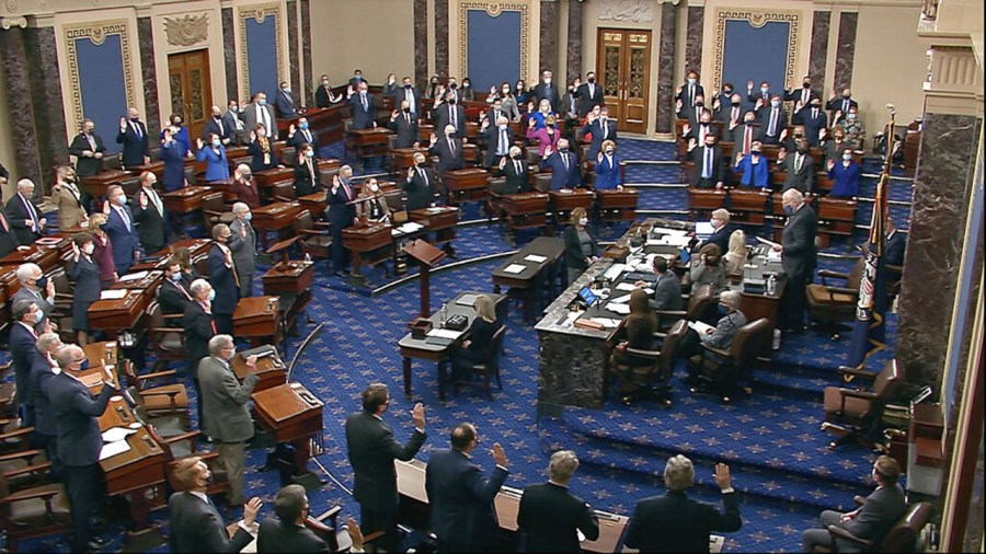 In a 55-45 procedural vote, the Senate set aside an objection from Kentucky Sen. Rand Paul that would have declared the impeachment proceedings unconstitutional. That means the trial on Trump’s impeachment, the first ever of a former president, will begin as scheduled the week of Feb. 8. The House impeached him two weeks ago for inciting deadly riots in the Capitol on Jan. 6 when he told his supporters to “fight like hell” to overturn his election defeat.