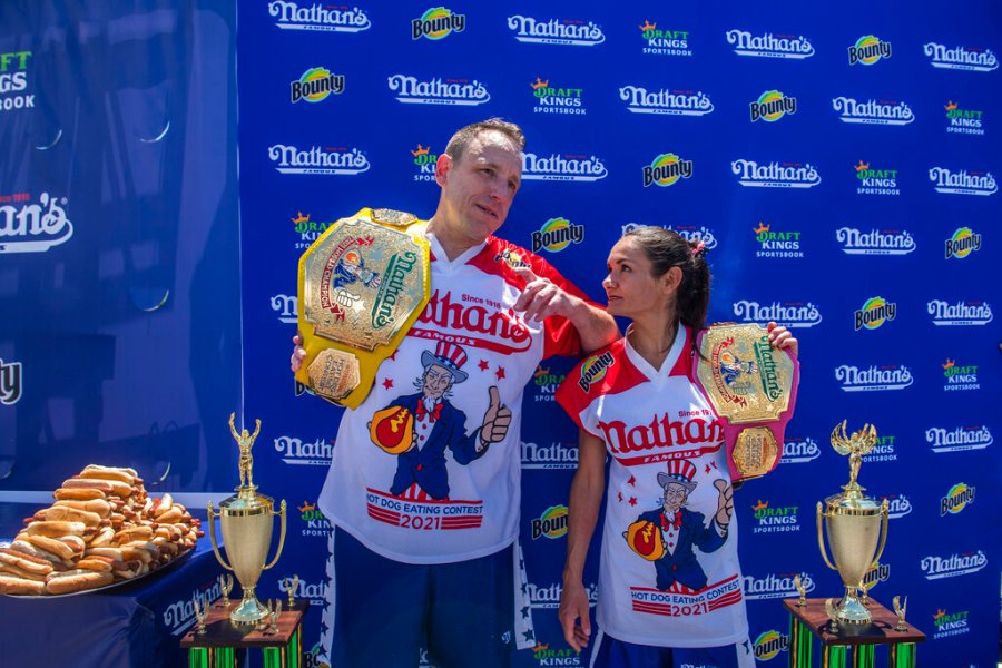 The annual spectacle of gluttony that is the Nathan’s Famous July Fourth hot dog eating contest also once again welcomed live audiences to watch the epic chowdown in Brooklyn. Joey “Jaws” Chestnut topped his own record by downing 76 franks and buns in 10 minutes in the men’s competition, while Michelle Lesco took the women’s title by eating 30 3/4 wieners and buns.