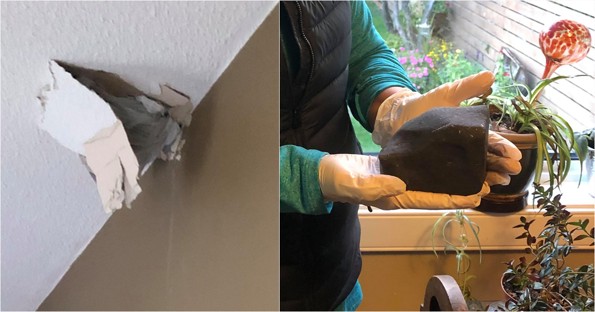 The meteor chunk hitting the roof sounded like an explosion, but at first Hamilton, 66, had no idea what had happened – only that she had dry wall dust all over her face and a sizable hole in the ceiling.