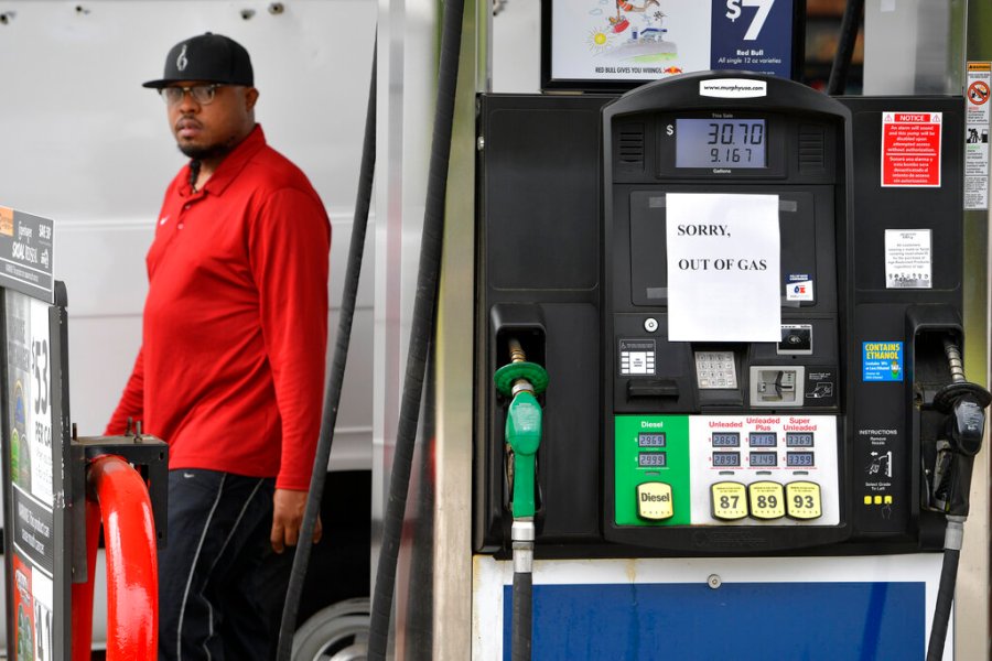 CHAMBLEE, Ga. (AP) — More than 1,000 gas stations in the Southeast reported running out of fuel, primarily because of what analysts say is unwarranted panic-buying among drivers, as the shutdown of a major pipeline by a gang of hackers entered its fifth day Tuesday.
