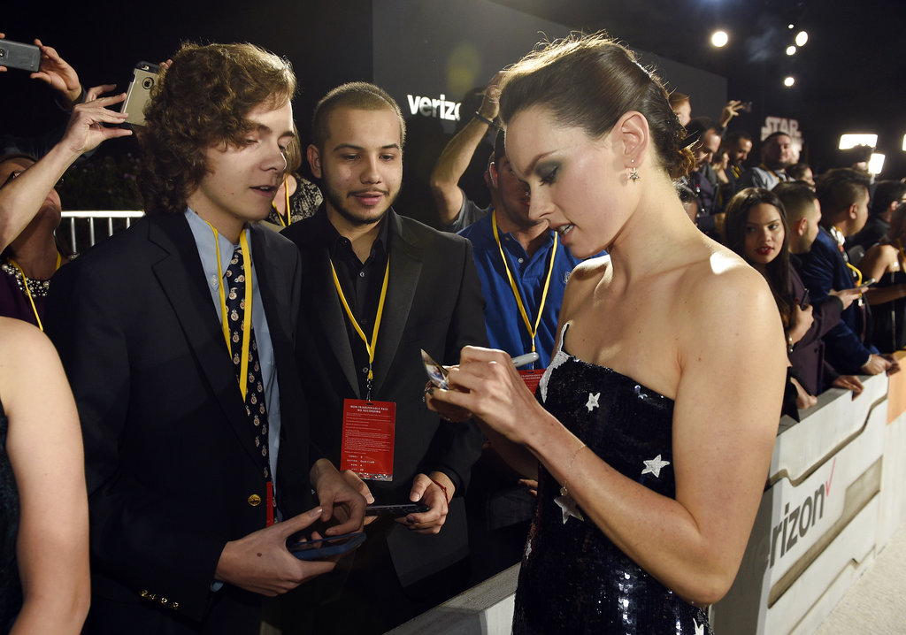 “Hi. You’re Daisy Ridley,” Tyler said, mostly to himself, when the actress approached. As she posed for a photo with Chris, Tyler fished a card from his mom’s purse that had Ridley, or Rey’s, face on it.