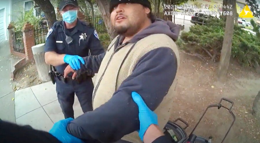SAN FRANCISCO (AP) — Police in the Northern California city of Alameda released body cam footage late Tuesday that shows officers pinning a man to the ground for more than five minutes during an arrest last week that ended in his death.