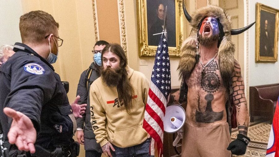 Jacob Chansley is facing six counts, including violent entry and disorderly conduct on Capitol grounds. Prosecutors said Chansley was one of the first rioters to enter the Capitol building and disobey officers’ request to leave. He was seen wearing face paint, no shirt and a furry hat with horns.
