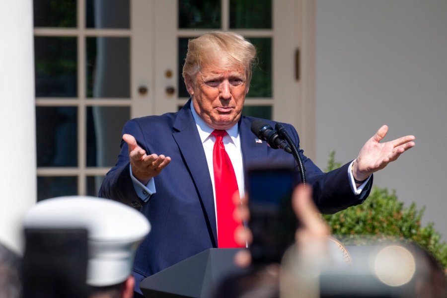 President Donald Trump welcomes first responders before signing H.R. 1327, an act ensuring that a victims' compensation fund related to the Sept. 11 attacks never runs out of money, in the Rose Garden of the White House, Monday, July 29, 2019, in Washington. (AP Photo/J. Scott Applewhite)