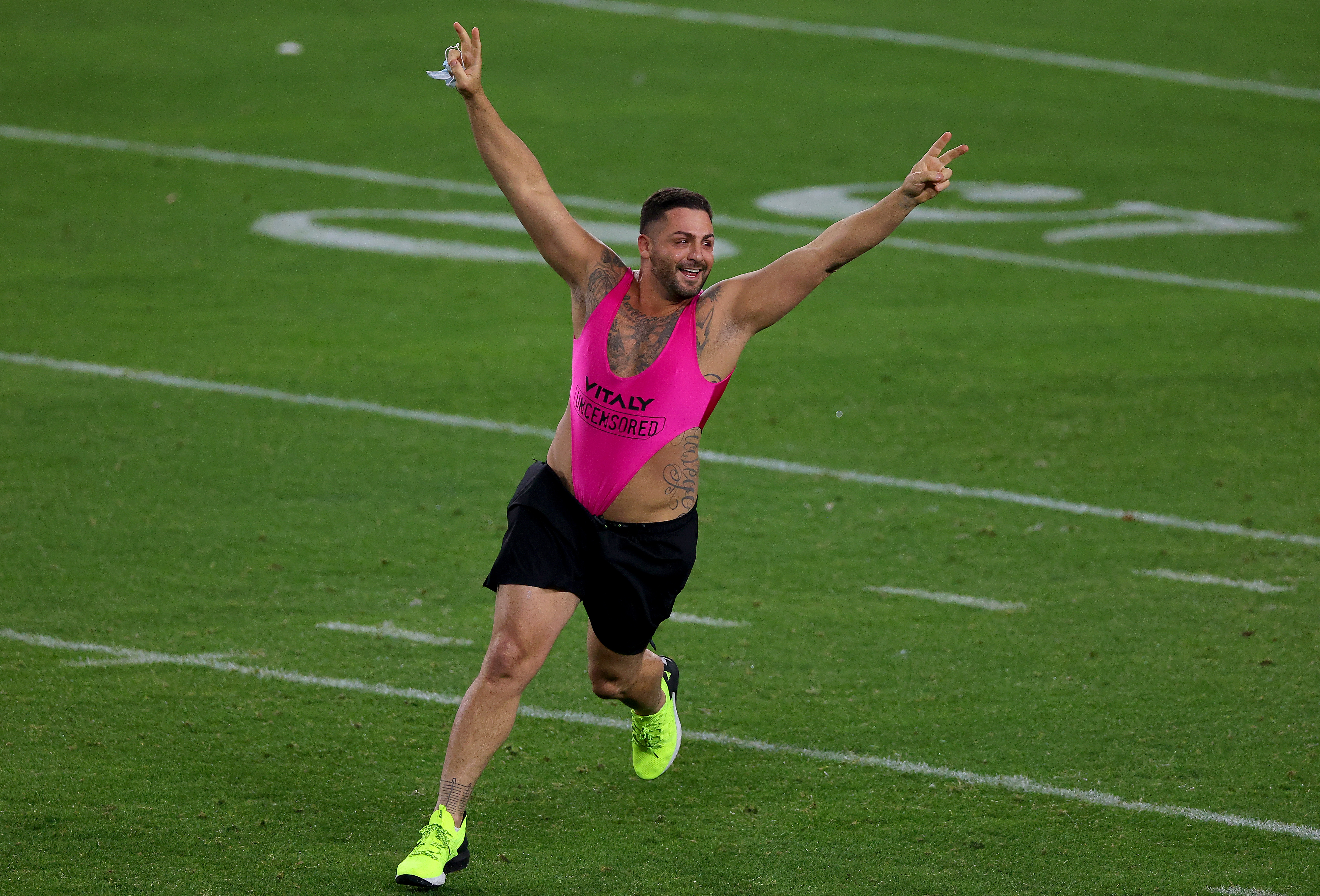 PHOTOS: Man in swimsuit runs on field at Super Bowl before being tackled by security